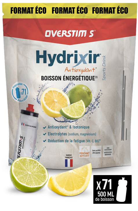 Isotonica, non acida (pH neutro) e senza conservanti, la bevanda per lo sforzo Hydrixir antiossidante(2) è perfettamente tollerata per accompagnarti nella tua pratica sportiva.